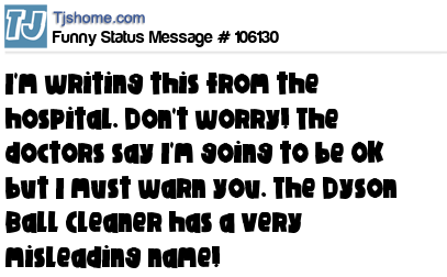 - # 66600 Hi, I'm Tweeting from casualty. Nothing to worry about, just turns out the new Dyson ball cleaner isn't what I thought it was.