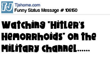 X Watching "Hitler's Hemorrhoids" on the Military channel......