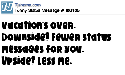 X Vacation's over. Downside? Fewer status messages for you. Upside? Less me.