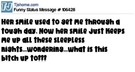 X says Her smile used to get me through a tough day. Now her smile just keeps me up all these sleepless nights...wondering...what is this b!tch up to???