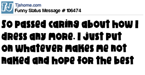 - # 106496 so passed caring about how I dress any more. I just put on whatever makes me not naked and hope for the best , then went shopping at walmart.