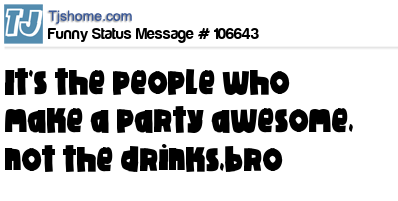 - # 67900 Went to a Real life party and I knew everybody there. Went to a Facebook party and saw most of my friends. Went to a Twitter party and didn't know anybody there. Went to a Myspace party and I was the only one there.