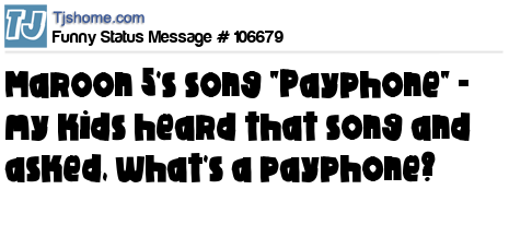X Maroon 5's song "Payphone" - my kids heard that song and asked, what's a payphone?