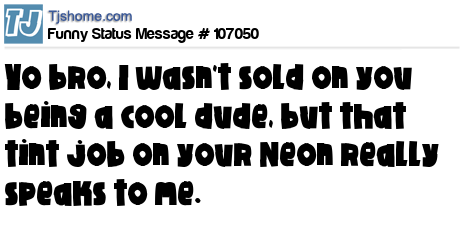 X is Yo bro, I wasn't sold on you being a cool dude, but that tint job on your Neon really speaks to me.