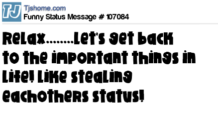 X is Relax........Let's get back to the important things in life! Like stealing eachothers status!