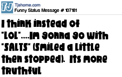 - # 137427 Instead of LOL, try SALTS ( smiled a little, then stopped)