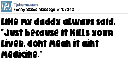 X Like my daddy always said, "just because it kills your liver, dont mean it aint medicine."