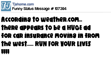 X According to weather.com,,, there appears to be a HUGE ad for car insurance moving in from the west..... RUN FOR YOUR LIVES !!!!