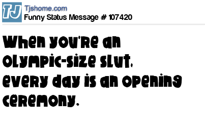 X says When you're an Olympic-size slut, every day is an opening ceremony.