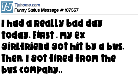 X is i had a really bad day today. First , my ex girlfriend got hit by a bus. Then, I got fired from the bus company..
