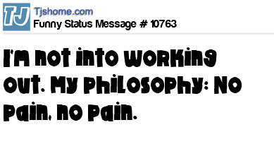 X says I'm not into working out. My philosophy: No pain, no pain.