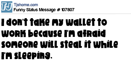 X says I don't take my wallet to work because I'm afraid someone will steal it while I'm sleeping.