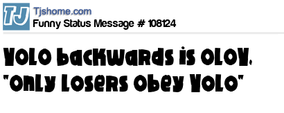 X is YOLO backwards is OLOY, "Only Losers Obey Yolo"