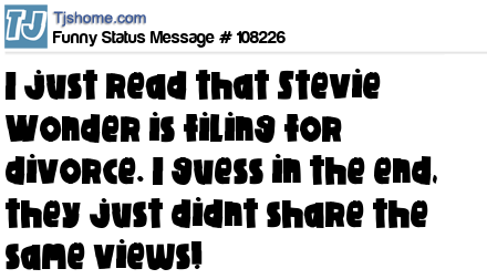 - # 108228 I just read that Stevie Wonder is filing for divorce. Talk about getting blindsided!