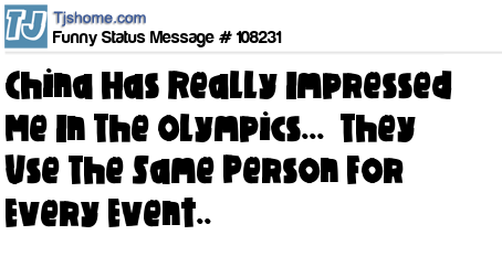 - # 108169 China has really impressed me in the Olympics. They use the same person for every event!