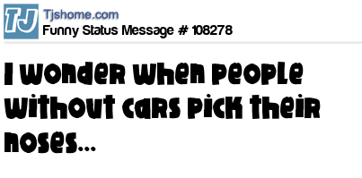 - # 108287 Why do people always pick their noses when they're at a stop light when everyone can see them.