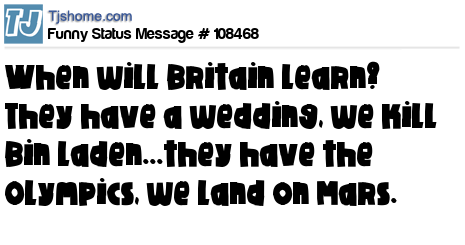 X When will Britain learn? They have a wedding, we kill Bin Laden...they have the Olympics, we land on Mars.