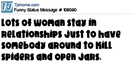 X says Lots of woman stay in relationships just to have somebody around to kill spiders and open jars.