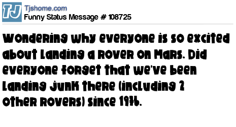 X is wondering why everyone is so excited about landing a rover on Mars. Did everyone forget that we've been landing junk there (including 2 other rovers) since 1976.