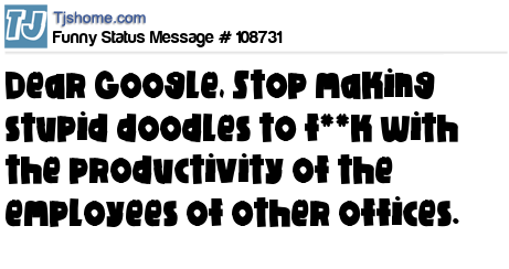 X is Dear Google, Stop making stupid doodles to f**k with the productivity of the employees of other offices.