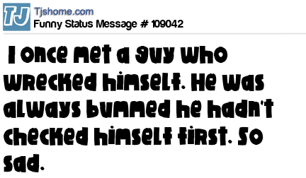 X is I once met a guy who wrecked himself. He was always bummed he hadn't checked himself first. So sad.