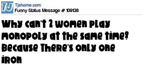 X is Why can't 2 women play monopoly at the same time? Because There's only one iron