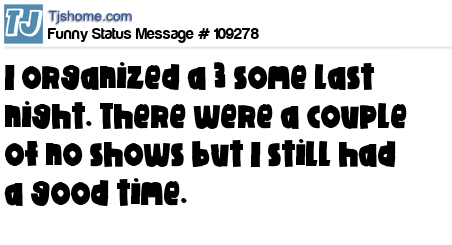 - # 97879 I organized a threesome last night....there were a couple of no shows, but I still had a good time