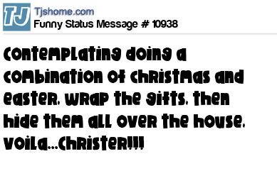 X is contemplating doing a combination of christmas and easter, wrap the gifts, then hide them all over the house, voila...Christer!!!