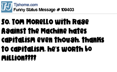 X says So, Tom Morello with Rage Against the Machine hates capitalism even though, thanks to capitalism, he's worth 60 million????