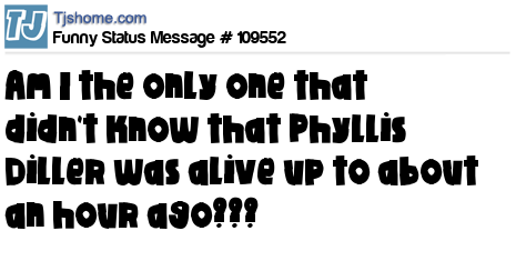 X is Am I the only one that didn't know that Phyllis Diller was alive up to about an hour ago???
