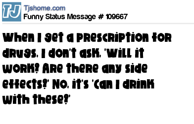 X says When I get a prescription for drugs, I don't ask, 'Will it work? Are there any side effects?' No, it's 'Can I drink with these?'