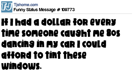 - # 109817 If I had a dollar for every time someone caught me dancing & singing to 90's songs in my car I could afford to tint these windows.