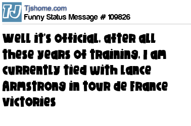 - # 109791 Just updated my resume. Hobbies section now includes: "Currently tied with Lance Armstrong in Tour de France victories."