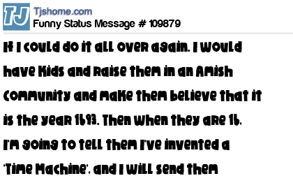 X If I could do it all over again. I would have kids and raise them in an Amish Community and make them believe that it is the year 1693. Then when they are 16, I'm going to tell them I've invented a 'Time Machine', and I will send them into the 'future'