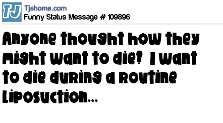 X is Anyone thought how they might want to die? I want to die during a routine liposuction...