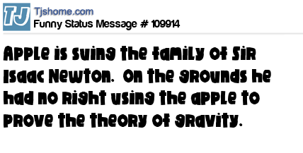 - # 110052 Apple is suing the family of Sir Isaac Newton on the grounds he had no right using the apple to prove the theory of gravity