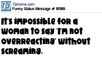 - # 149645 You haven’t seen a woman overreact until you tell her she is overreacting.