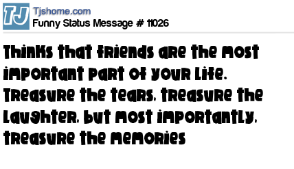 X is thinks that friends are the most important part of your life. Treasure the tears, treasure the laughter, but most importantly, treasure the memories