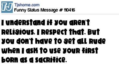 X says I understand if you aren't religious, I respect that. But you don't have to get all rude when I ask to use your first born as a sacrifice.