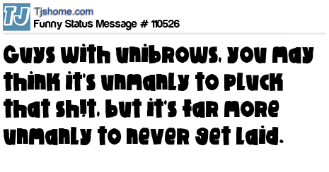 X is Guys with unibrows, you may think it's unmanly to pluck that sh!t, but it's far more unmanly to never get laid.