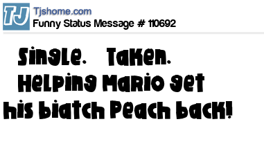 X is ❒ Single. ❒ Taken. ✔ Helping Mario get his biatch Peach back!