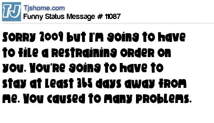 X says sorry 2009 but I'm going to have to file a restraining order on you. You're going to have to stay at least 365 days away from me. You caused to many problems.