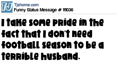 X is I take some pride in the fact that I don't need football season to be a terrible husband.