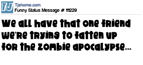 X says We all have that one friend we're trying to fatten up for the zombie apocalypse...