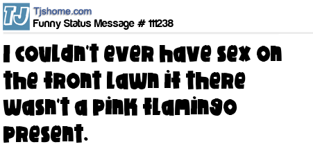 X says i couldn't ever have sex on the front lawn if there wasn't a pink flamingo present.