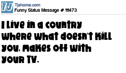 X says I live in a country where what doesn't kill you, makes off with your TV.