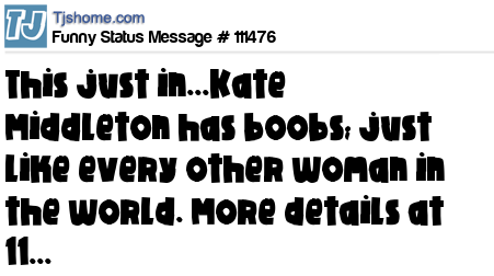X says This just in...Kate Middleton has boobs; just like every other woman in the world. More details at 11...