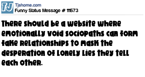 X says There should be a website where emotionally void sociopaths can form fake relationships to mask the desperation of lonely lies they tell each other.