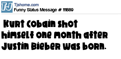 - # 90099 so....has anyone else ever noticed....that Kurt Cobain killed himself one month after Justin Bieber was born....I guess Kurt knew....