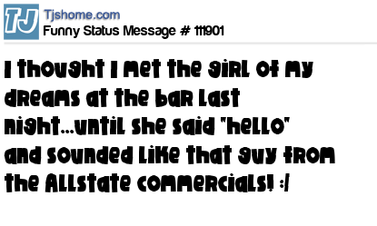 X I thought I met the girl of my dreams at the bar last night...until she said "hello" and sounded like that guy from the Allstate commercials! :/